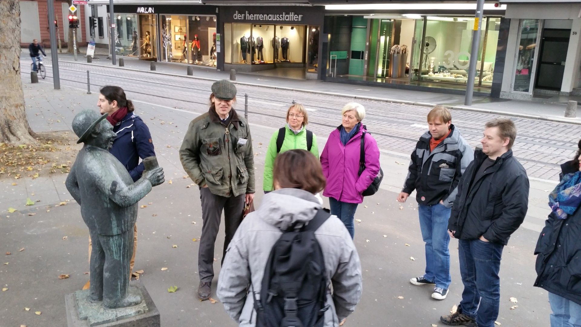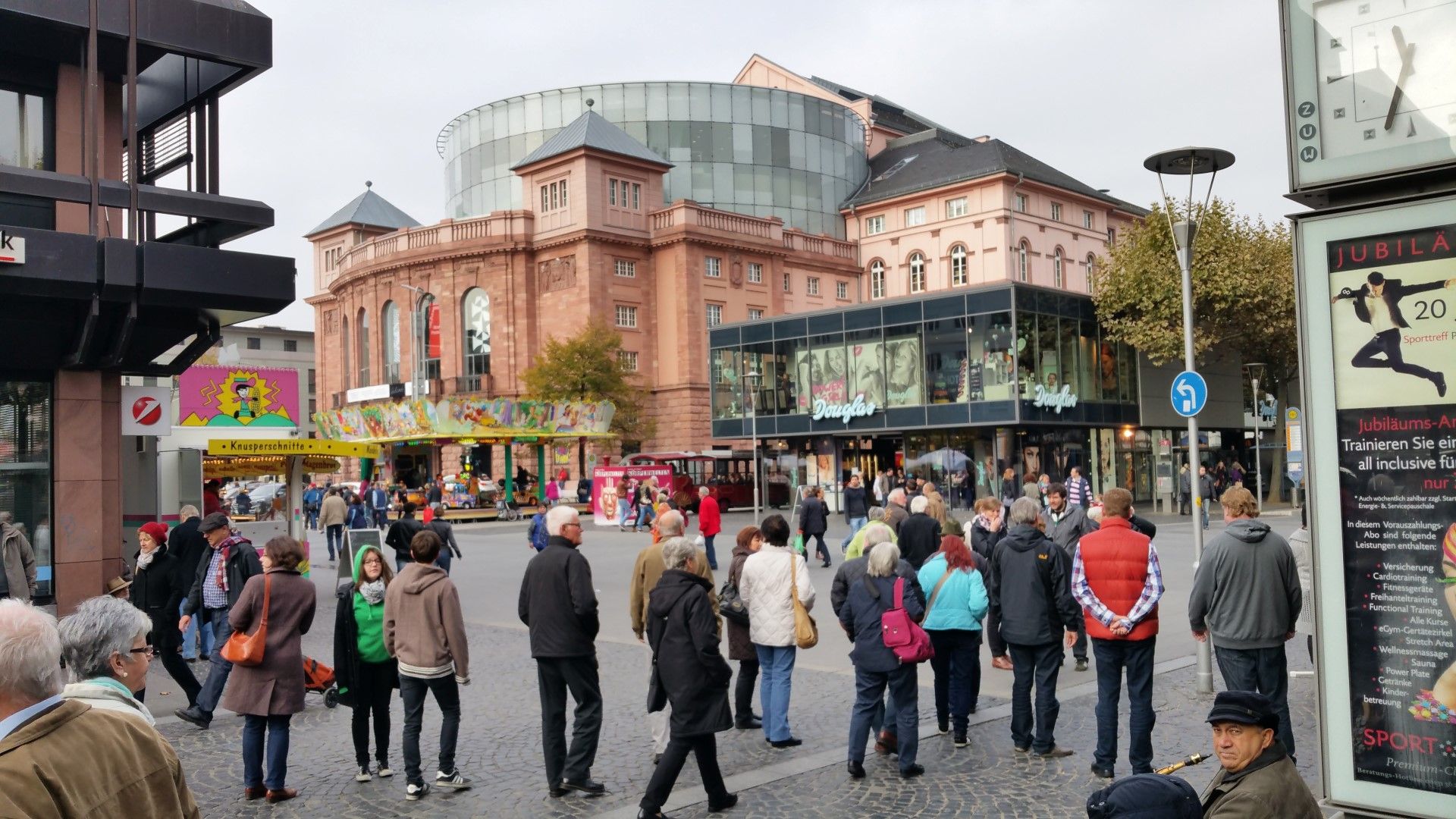 Nach längerer Pause was Wochenend-Ausflüge angeht starteten wir im Oktober 2015 zu einer Fahrt nach Mainz. Hier wollten wir unserem Mitglied Markus Müller und „seinem“ Staatstheater einen Besuch abstatten. Wir starteten am 23.10.2015 um 12.45 am Rathausplatz in Altusried. Eigentlich genug Zeit um es rechtzeitig nach Mainz zu schaffen…aber der Verkehr hat uns hier leider immer wieder einen Strich durch die Rechnung gemacht. Die Ankunftszeit lt. Navi schwankte zwischen 20-22 Uhr.  Zu spät für die sechs tapferen Recken die sich für die Premiere der Oper „Faust“ Margarethe angemeldet hatten. Aber gegen alle Widerstände wir haben es dann doch knapp geschafft. Um 19.30 Uhr hielt unser Bus an der Kreuzung zum Gutenbergplatz wo Markus (der die Aufführung ein paar Minuten verzögert hatte) die sechs in Empfang nahm und eilig mit ihnen ins Theater rannte. Sie konnten dann doch der tollen Premiere beiwohnen. Die anderen Mitglieder haben den ersten Abend gemütlicher ausklingen lassen, bei rheinlandpfälzischem Essen (Gott diese Riesenfleischwurst…) und Wein im „Beichtstuhl“, einer schnuckeligen Weinstube.