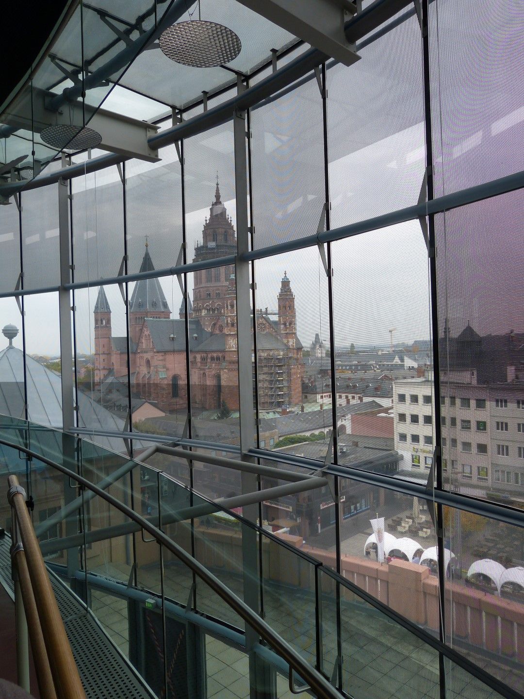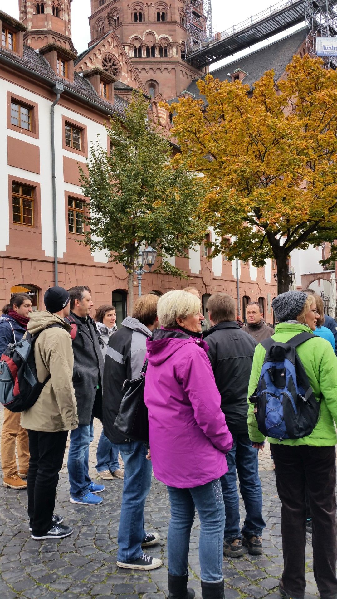 Am Samstag nach dem Frühstück stand eine Stadtführung durch das schöne Mainz an. Hier wurden wir an viele schöne Orte geführt. Auch in die Stephanskirche, die durch die von Marc Chagall installierten Fenster weltbekannt ist. Hier hatten wir dann auch noch das Vergnügen eines kurzen Orgelkonzerts durch Stefanie Gaida (damals noch Hattler). Am Ende der Runde führte uns der Weg ins Gutenberg-Museum in dem wir mehr über Buchdruck und die Werke Gutenbergs erfahren durften. Zum Mittagessen waren wir in der netten Weinstube „Rote Kopf“ in einem schönen Kellergewölbe.  Am Abend war dann wieder Kultur Programm. Die meisten hatten sich für das Musical „Spamalot“ entschieden, einige wählten ein ernsteres Programm. „Ich bin wie Ihr, ich liebe Äpfel“ wurde im kleinen Haus aufgeführt.