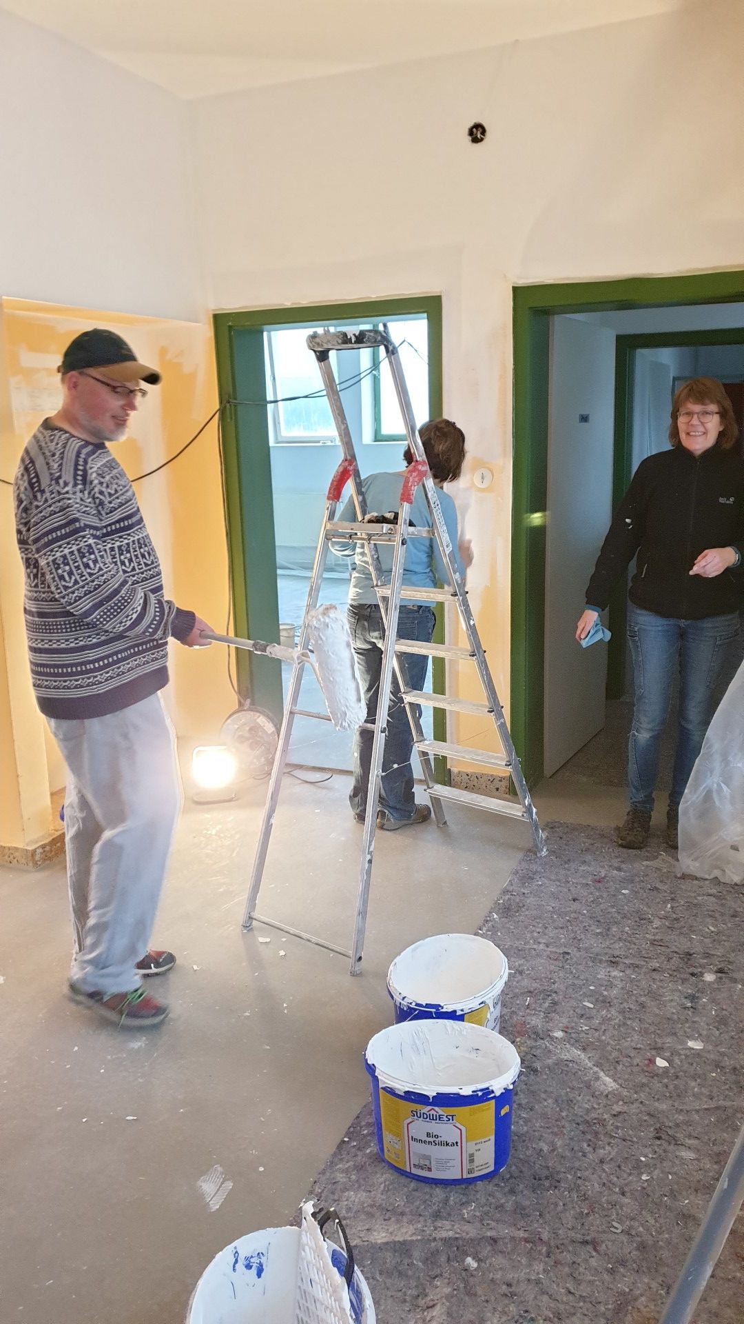 Aber auch in Eigenleistung haben wir, natürlich unter Einhaltung der Corona-Regeln, viele Arbeiten vorgenommen: Abriss der Zwischenwände, Tapeten entfernen, div. Malerarbeiten, Möbel-Installationen, Putzaktionen, etc.