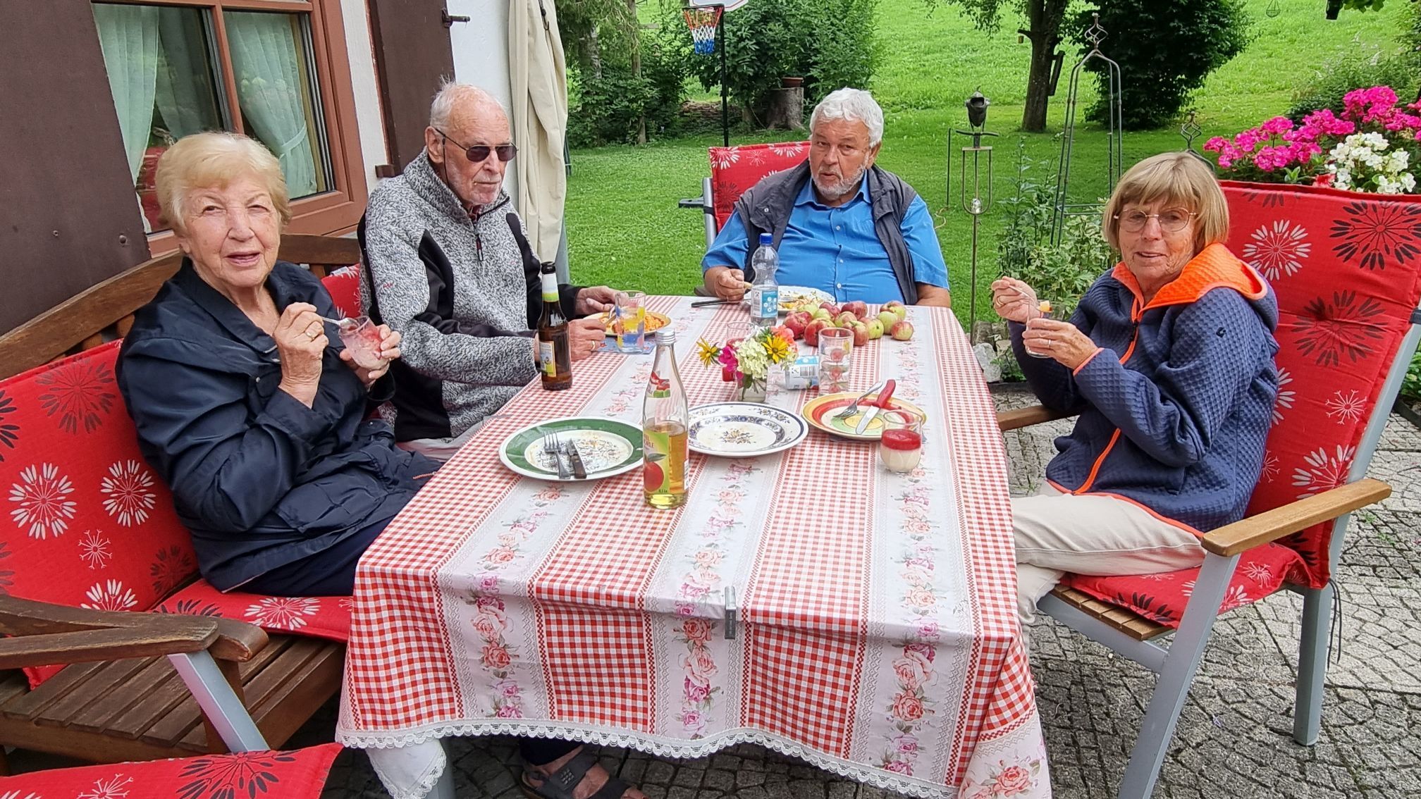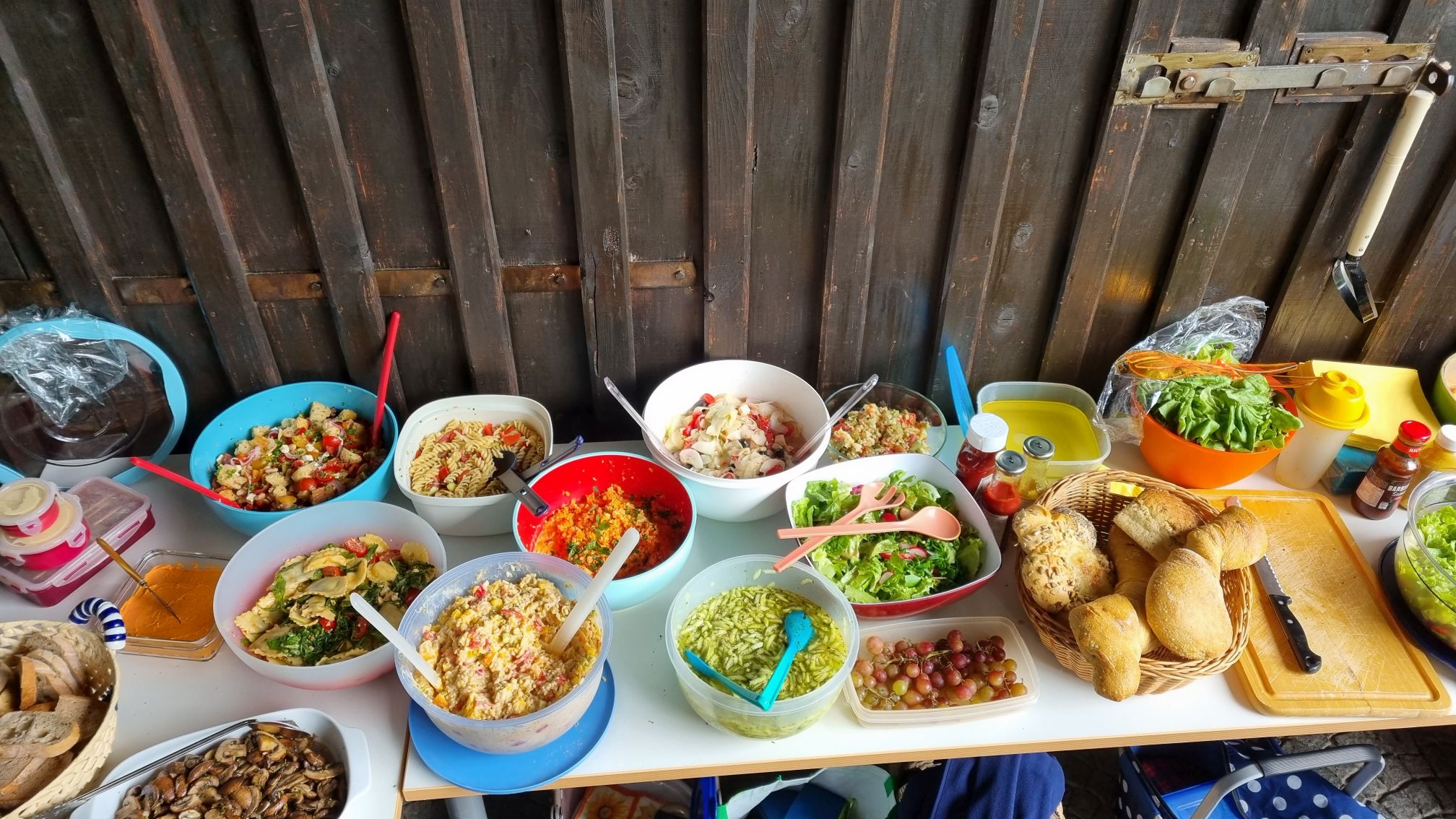 Und wieder trafen wir uns an diesem leicht bewölkten Augustsonntag bei Ute Schmidts in Schöneberg zum Grillen und gemütlichen Zusammensein. Für Grills, Sitzgelegenheiten, Getränke und Beilagen (Salate u. Co.) war bestens gesorgt und das Grillgut hat sich jeder selbst, nach individuellem Geschmack, mitgebracht.