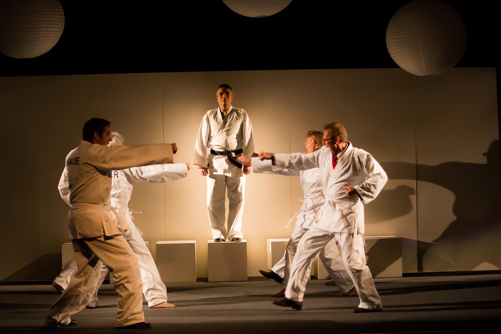 Das Stück und seine militaristisch geprägte Sprache zeigen Menschen, denen gar nichts anderes übrig bleibt, als sich selbst zu verbiegen, ihr Privatleben zu opfern und skrupellose Monster zu spielen, sofern sie im Haifischbecken Wirtschaft überleben wollen. Denn „Business, das ist Krieg, Blut und Tränen“ und wer darin nicht bestehen kann, der „kommt eben im Leichensack zurück“.