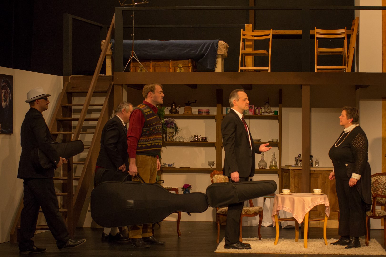 Professor Marcus plant einen Überfall auf einen Geldtransporter. Ihm zur Seite stehen die drei Ganoven Louis Harvey, Dr. Courtnay und Willie Knoxton. Keiner von ihnen hat den anderen je vorher gesehen, und sie kommen nur wegen dieses einen Raubüberfalls zusammen. So treffen sie sich im Obergeschoss eines einsam gelegenen Hauses, das der leicht exzentrischen Mrs. Wilberforth gehört. Zunächst hält die nette alte Dame den Professor und seine "Freunde" für ein Streichquartett, das tägliche Proben in ihrem Haus abhält.